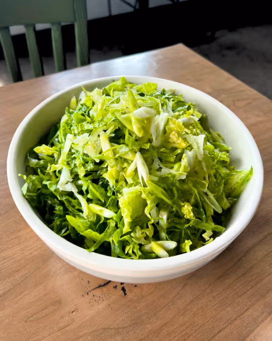 Thinly chopped romaine with green onion, dill, olive oil and vinegar