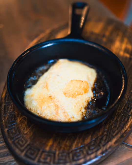 Kefalograviera cheese fried in olive oil and flamed with brandy